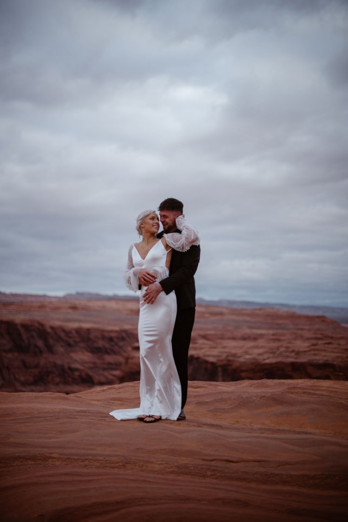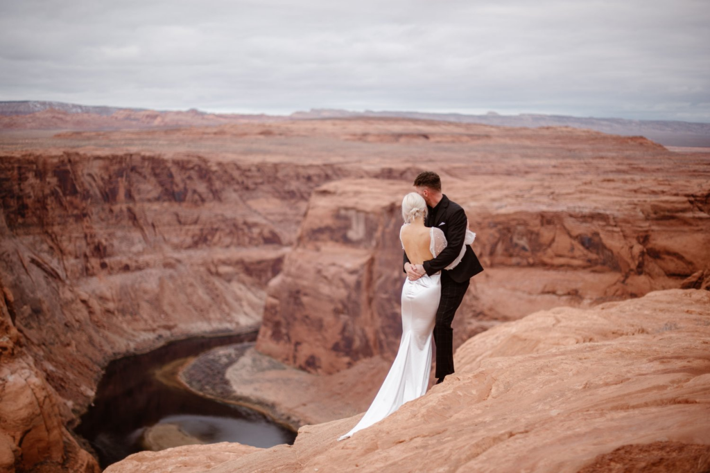 The thing about Horseshoe Bend is that the weather can be pretty unpredictable. For Jess & Brandon’s elopement, Northern Arizona was experiencing an uncharacteristic cold front. So needless to say, it was a bit chilly! (Don’t worry, I always have extra gloves and hand warmers around)! However, because of this, we essentially had the whole place to ourselves! Jess & Brandon got to exchange their vow overlooking the whole park and we were able to take some epic portraits as well!