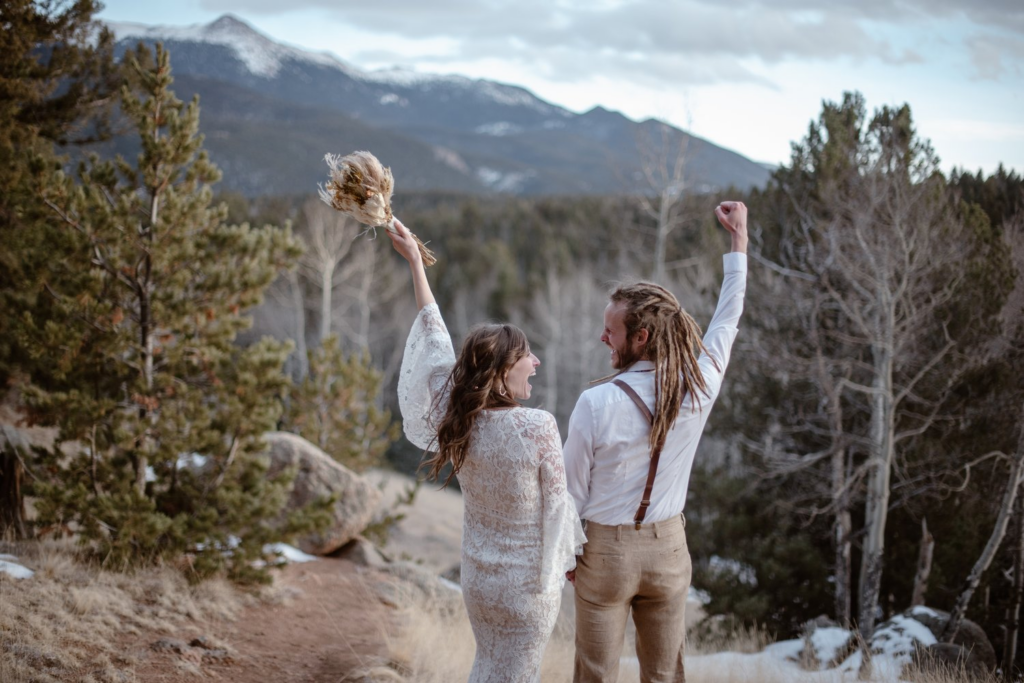 The day of the elopement was bright and sunny, with just a hint of a breeze to keep us cool. Dre & Daniel arrived dressed in beautiful mountain casual wedding attire, ready to exchange their vows in a private ceremony surrounded by the natural beauty of the park. We began by exploring the park and finding the perfect spots for photos. The park is vast, with over 5,000 acres of open space, and we were able to find secluded areas that allowed us to capture stunning images of the couple in the natural surroundings.