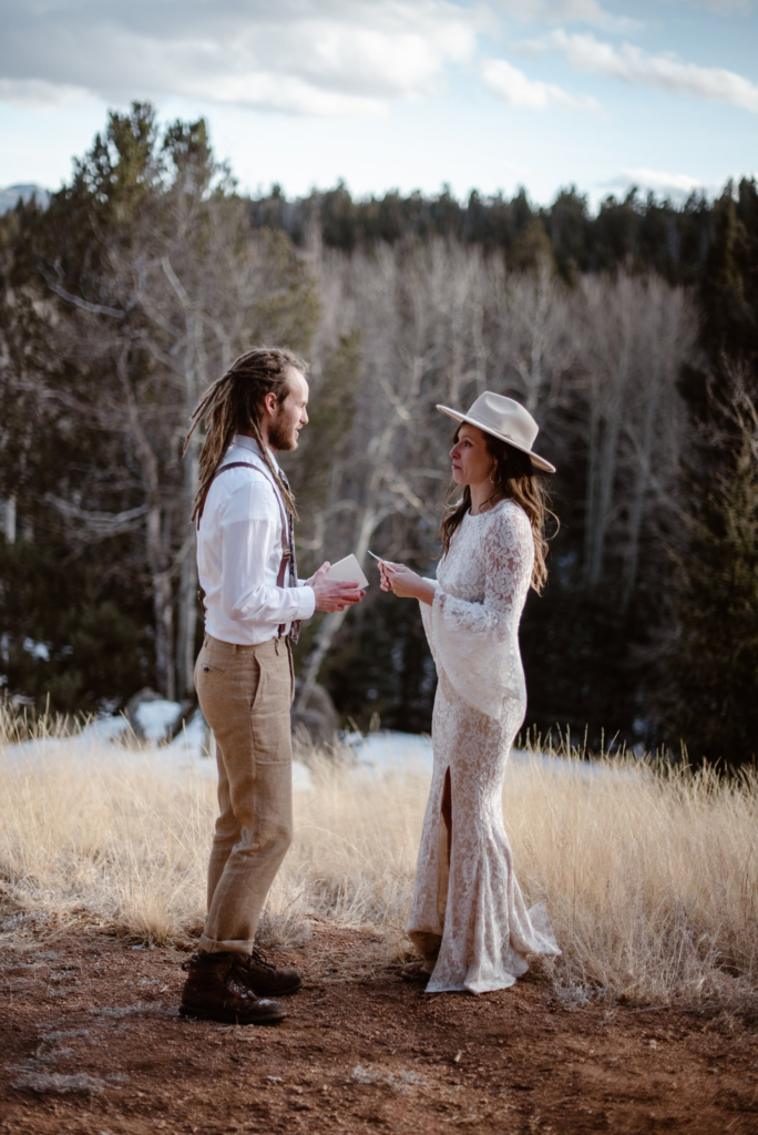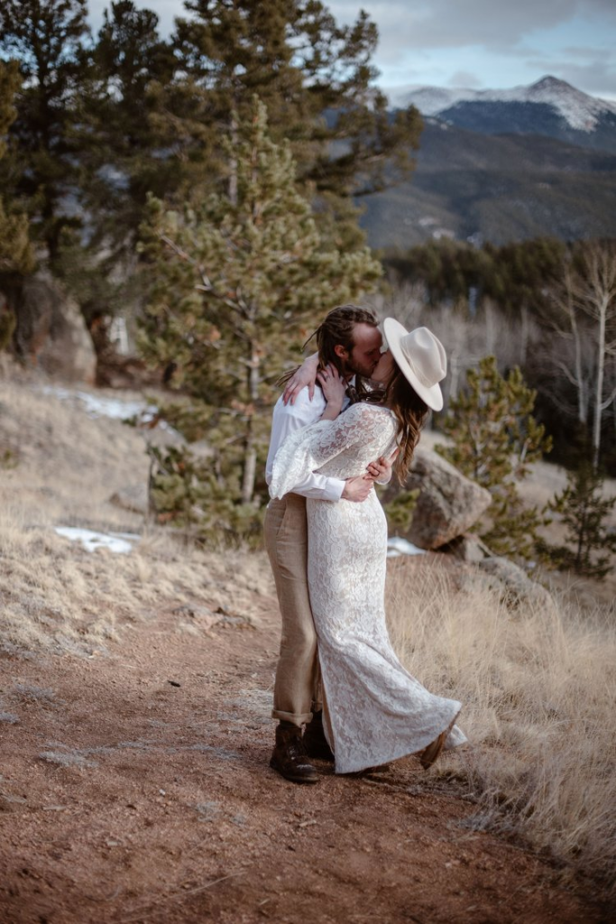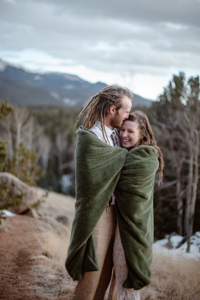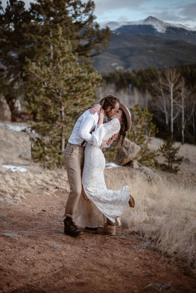 As the day progressed, the couple exchanged their vows in a small ceremony under an evergreen tree, with surrounded by woods. The ceremony was emotional and intimate, with just Dre & Daniel, and their closest family members in attendance. As they exchanged their rings and said their vows, the stunning backdrop of the Rocky Mountains made for a breathtaking setting.