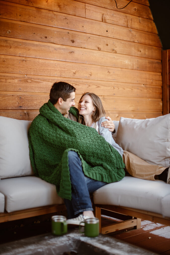 Want to capture your playful side? Bring along a favorite board game like Scrabble or chess and let’s set the scene in your cabin or favorite coffee shop. These lifestyle-style engagement photos feel personal, relaxed, and so you.